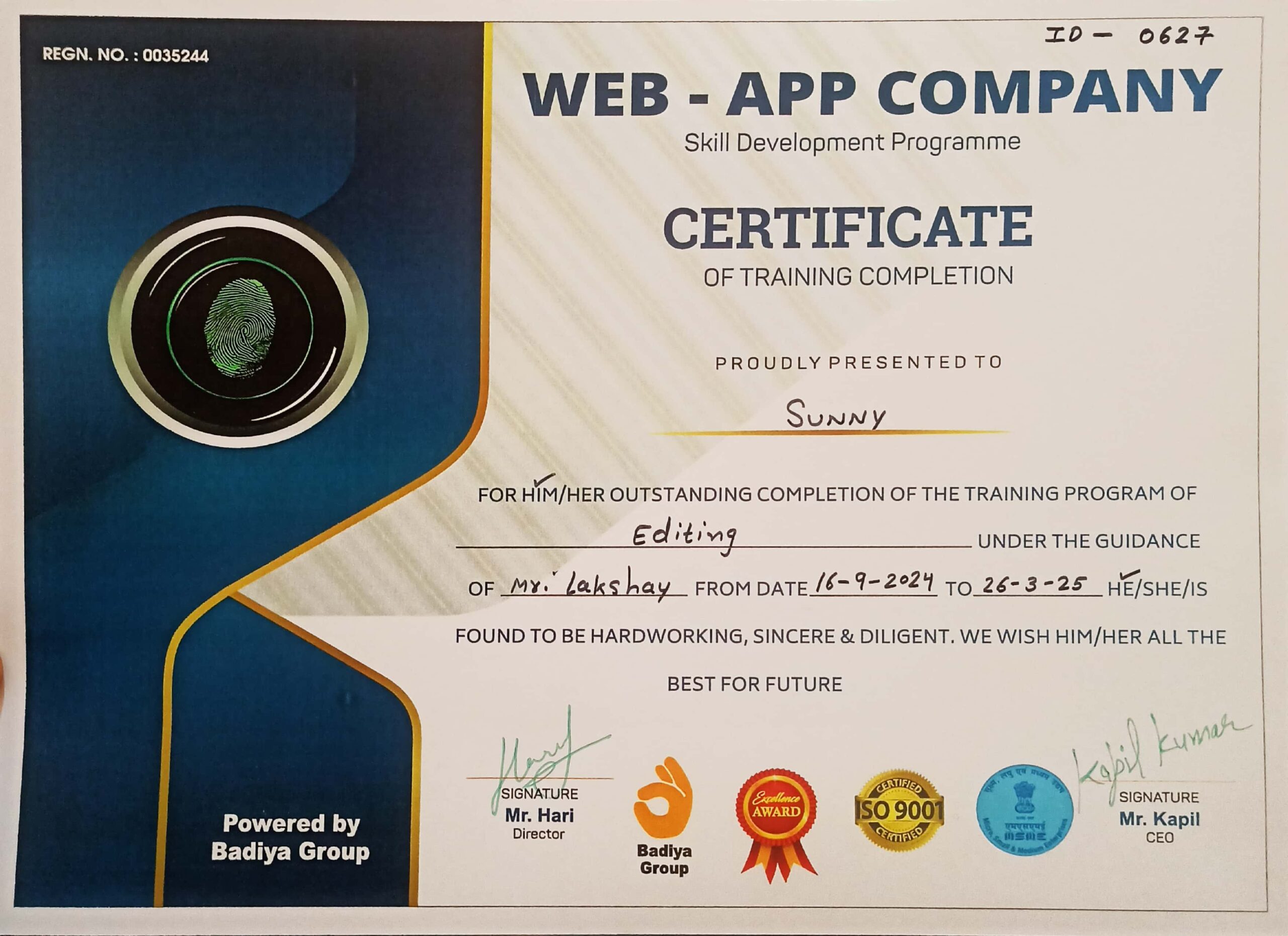 Certificate No.